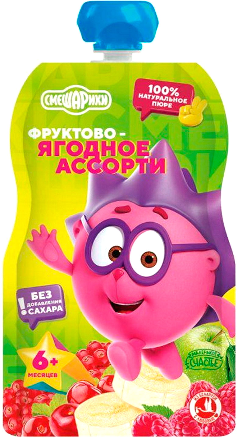 Пюре Маленькое счастье Смешарики Фруктово-ягодное ассорти с 6месяцев