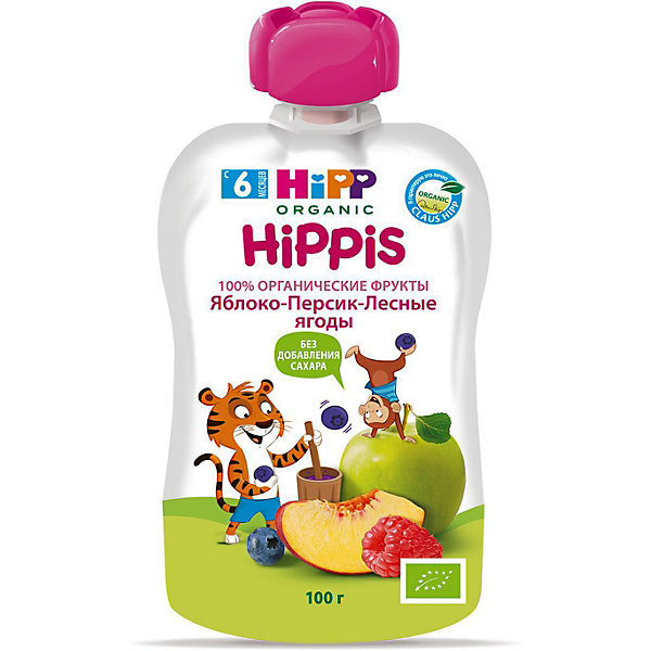 Пюре HiPP HiPPis яблоко, персик, лесныее ягоды, с 6 мес, 6 шт