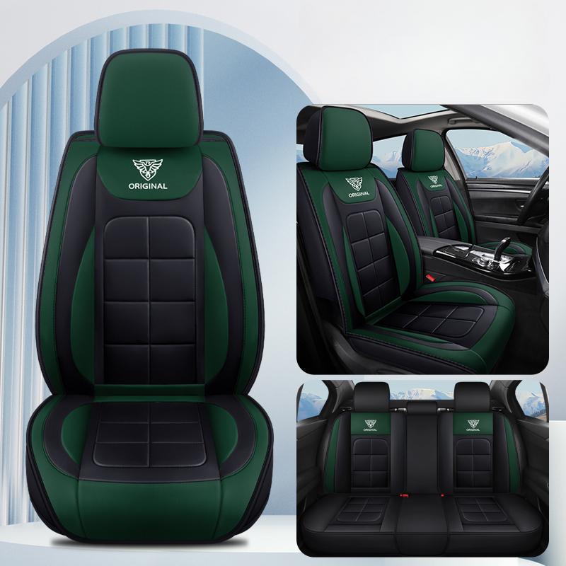 Пятиместные Чехлы на Сиденья Водонепроницаемая Подушка из Искусственной Кожи Универсальные Чехлы для Салона Автомобиля с Нескользящей Защитой для Большинства Автомобилей зелёный
