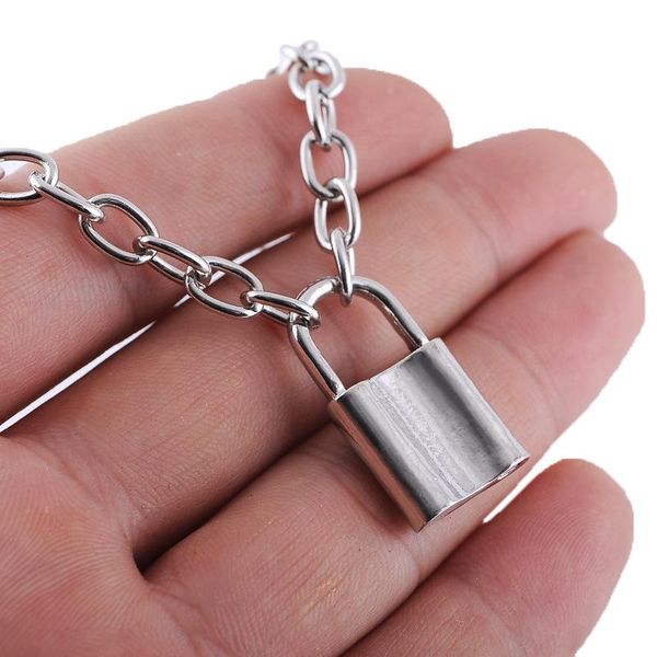 temperament personality geometric pendant necklace ornaments simple lock - shaped joker alloy necklace, Silver