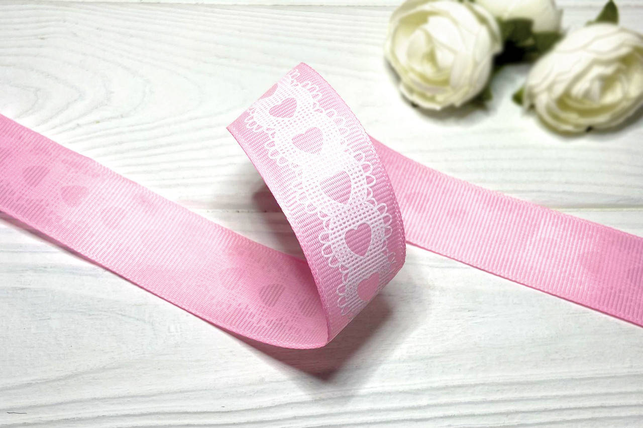 РЕПСОВАЯ лента с принтом "Кружевное сердце" 2,5см ≈8,3 метра, лента репс нежно-розовый