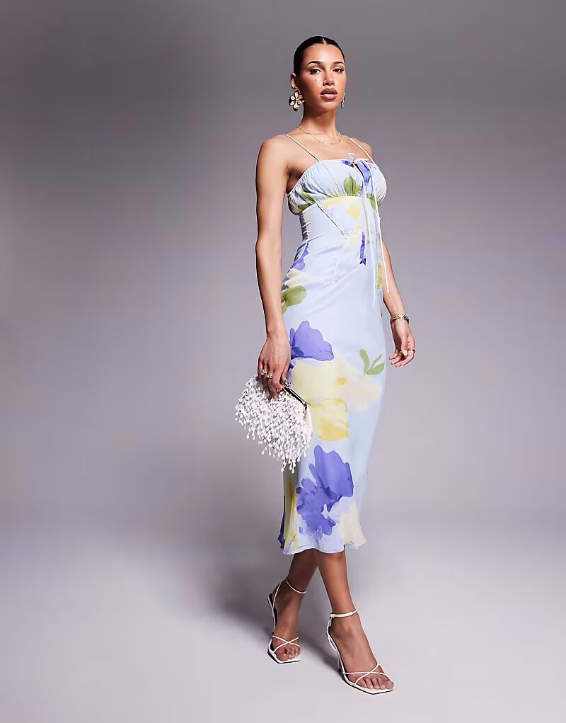 Платье миди из шифона с косой талией ASOS DESIGN с сиреневым цветочным принтом