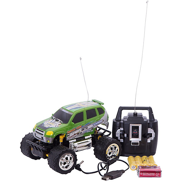 Радиоуправляемый джип Пламенный мотор зеленый - увлекательная игрушка на радиоуправлении, которая умеет ездить в разных направлениях. Машинка способна достигать скорости до 10 км/час. Благодаря большим колесам она ездит по пересеченной местности, грунту, преодолевает препятствия. Машинка может использоваться для игр как дома, так и на улице.Радиоуправляемый джип Пламенный мотор зеленый можно приобрести в нашем интернет-магазине.