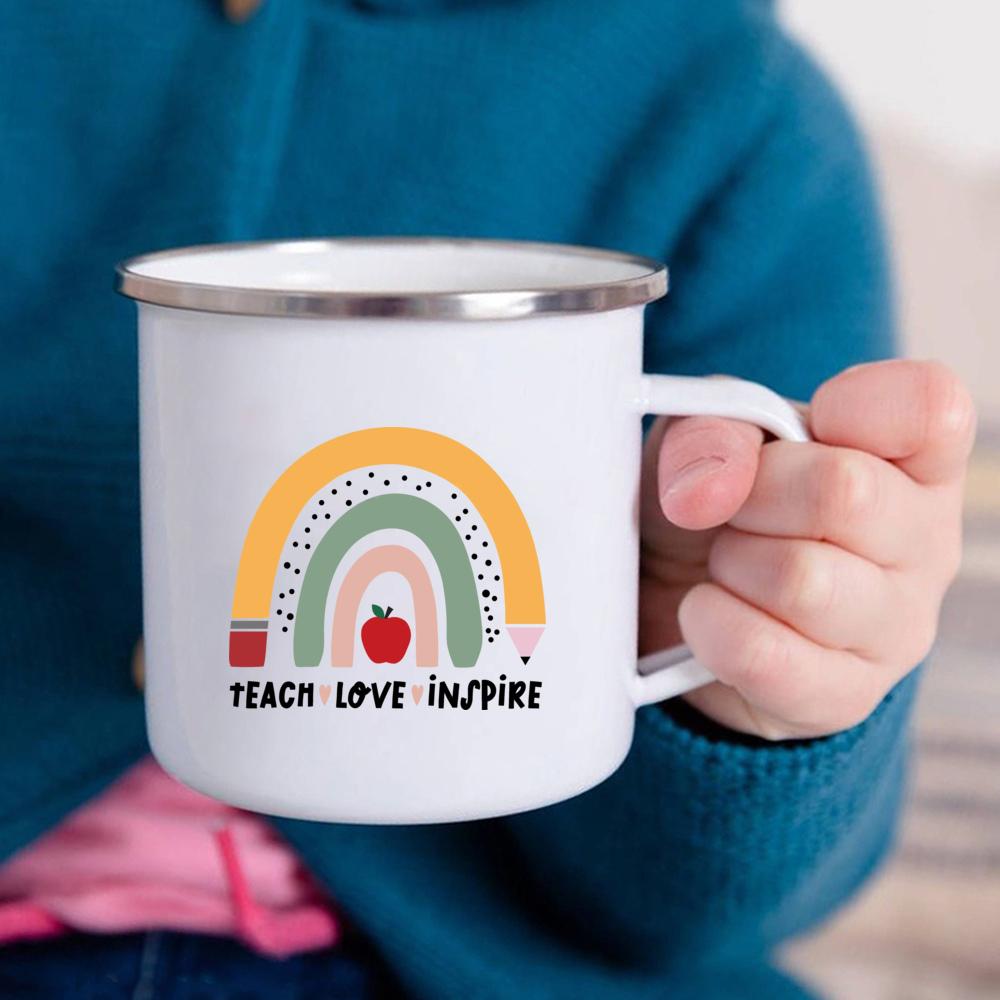 Радужная эмалированная кружка для учителя, высококачественные подарочные чашки для сока, кофе, напитка для учителя, сока, кофе, воды, какао, молока, эмалированная кружка 360ml