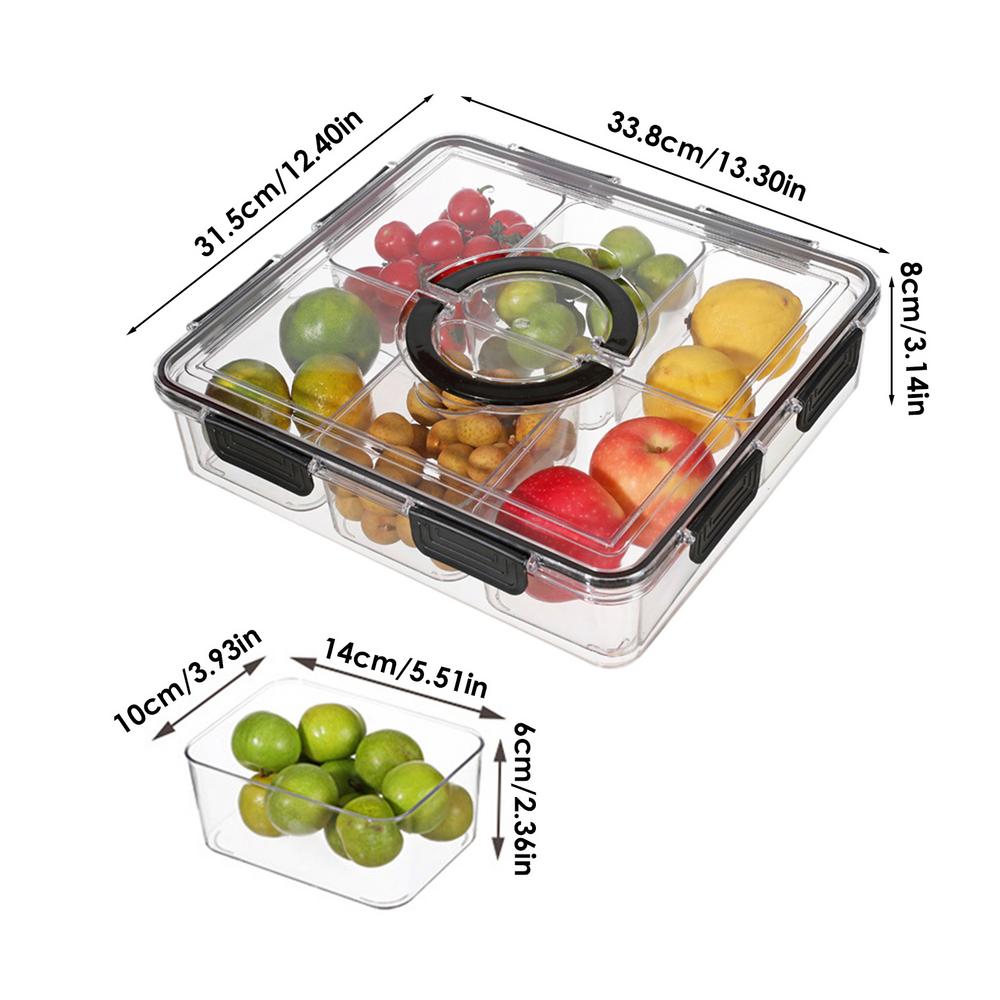 Разделенный лоток с крышкой Разделенный лоток для хранения Контейнерный лоток с 6 отделениями Поднос для продуктов Квадратный ящик для хранения фруктов чёрный