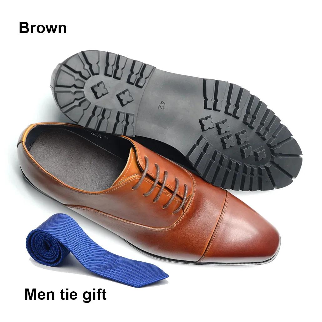 Размер 38-46 Модные Нескользящая Резиновая Черная Подошва Элегантные Мужские Деловые Оксфорды Натуральная Кожа Социальная Классическая Формальная Обувь для Мужчин 46 коричневый