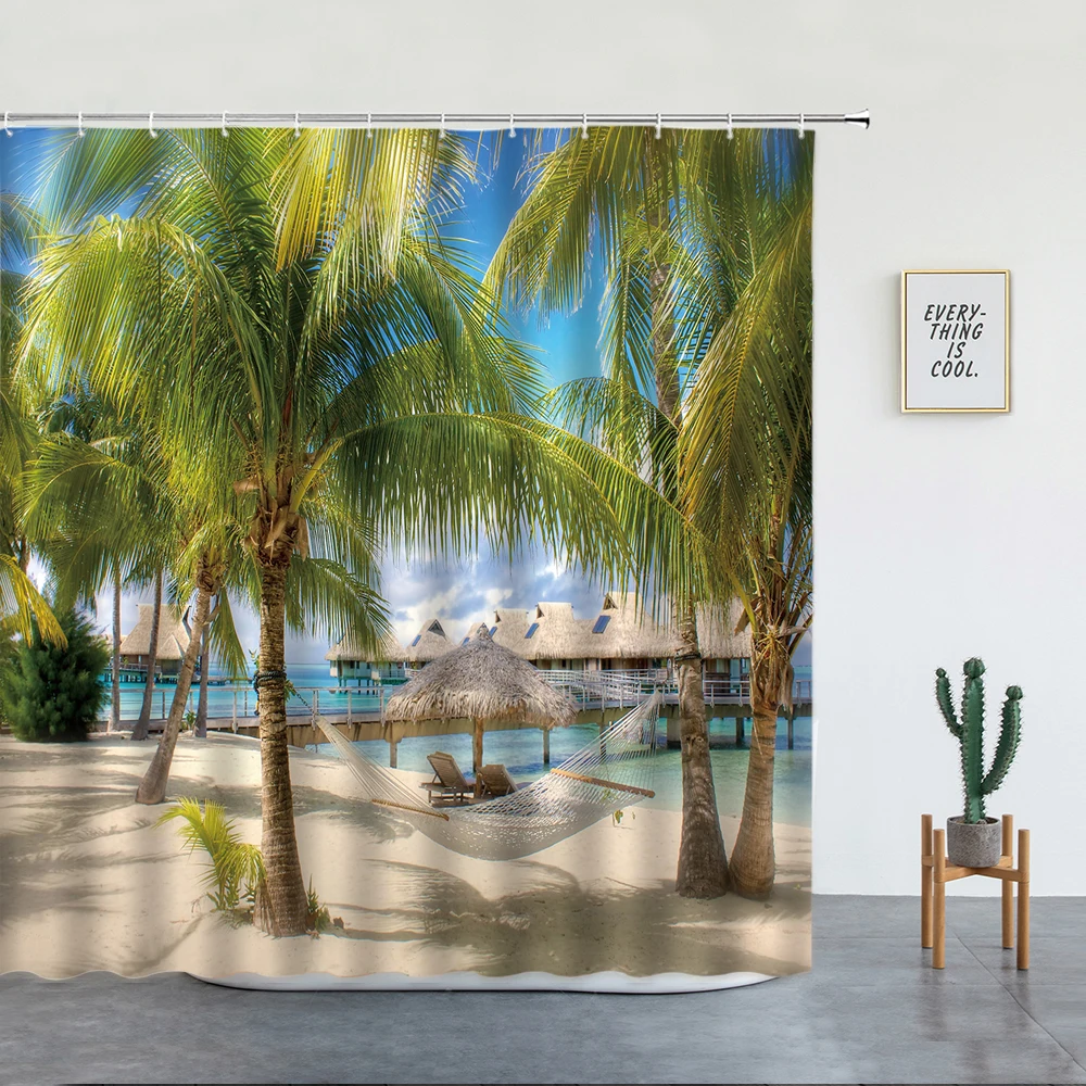 Разнообразные яркие шторы для душа с 3D-принтом на солнечном пляже, Полиэстеровая Водонепроницаемая декоративная занавеска для дома с крючк...