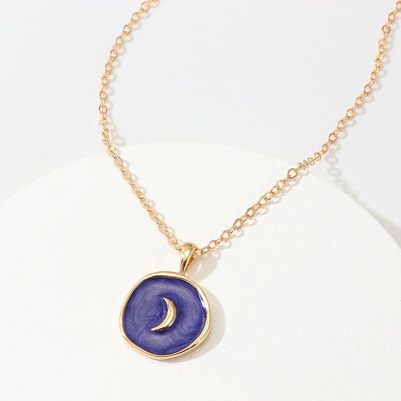 Разноцветные ожерелья с подвеской в виде луны, звезды и молнии для женщин и девочек, эмалированные модные вечерние повседневные украшения, модное ожерелье-цепочка на ключицы фиолетовый