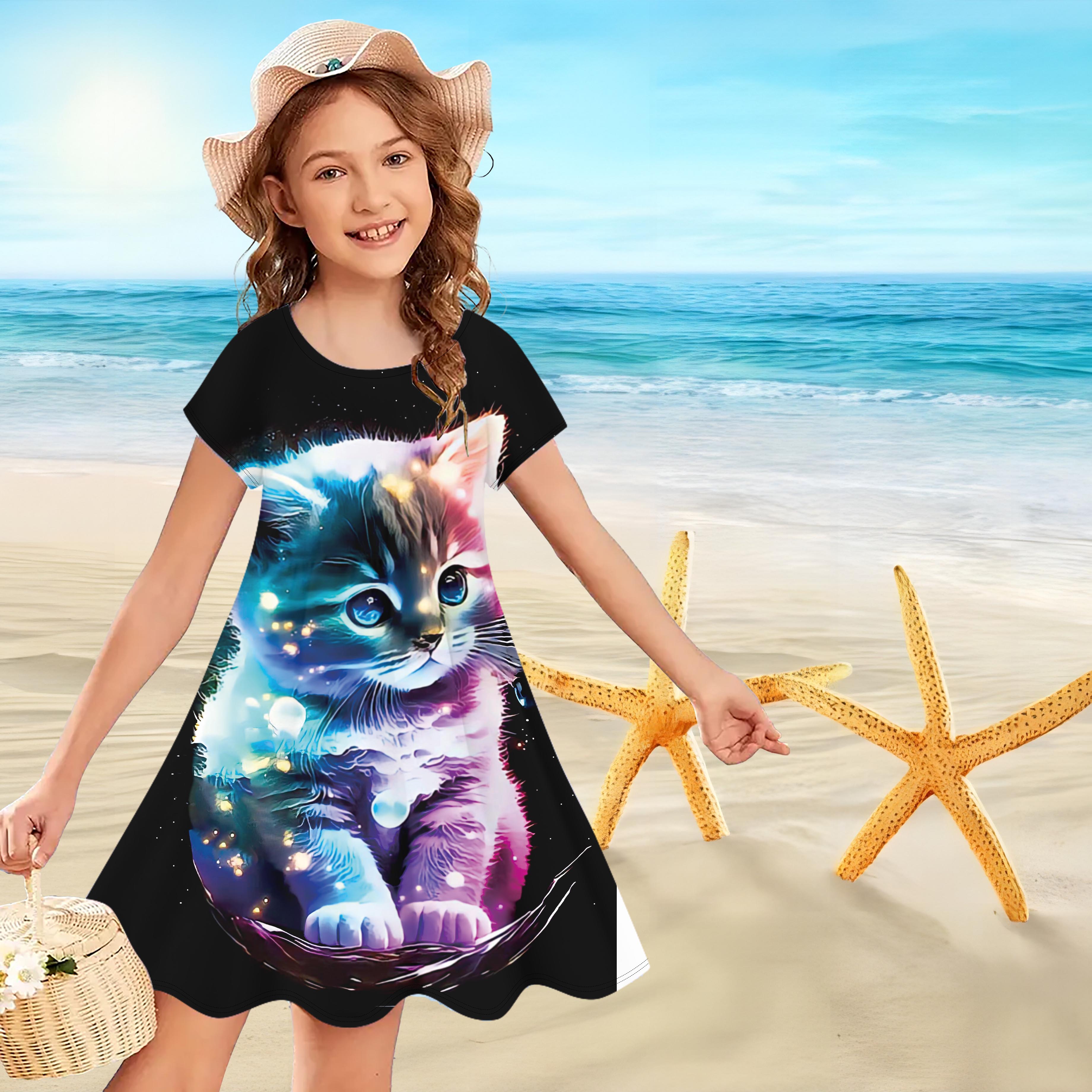 Разноцветные платья с 3D принтом котят для девочек, детское праздничное платье принцессы без рукавов для девочек, платье на бретелях с 3D принтом