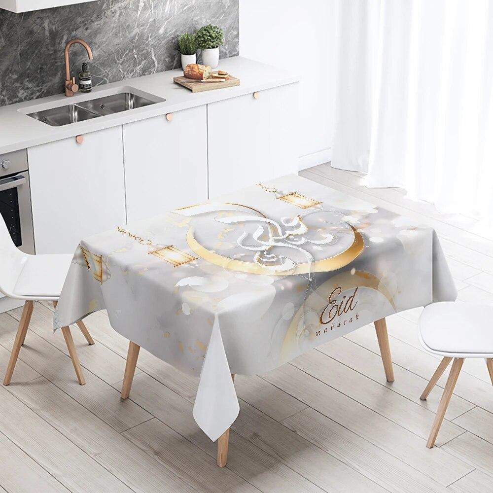 Рамадан Мубарак Домашний Декор Скатерть Исламская Мусульманская Мечеть Рамадан Карим Декоративная Скатерть Водонепроницаемая и Устойчивая к Пятнам 85x85cm