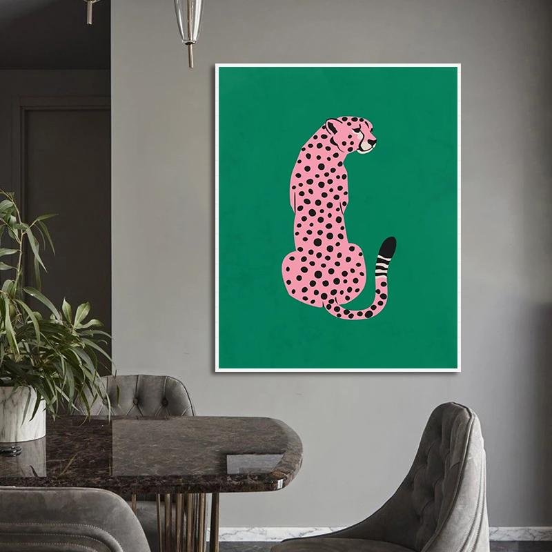 Рамка из цельного дерева Рамка из цельного дерева Абстрактное животное Розовый тигр Настенная живопись на холсте Плакаты и принты Картины Декор для дома и гостиной 15*20cm(with frame)