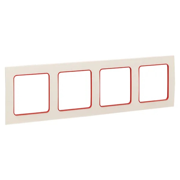 Рамка EKF EAM-G-305-10 Стокгольм белая с линией цвета красный четверная, EAM-G-305-10