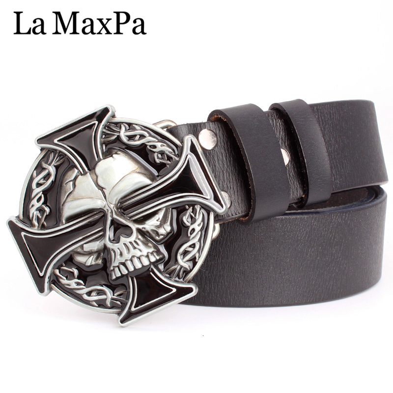 2021 New Homem Estilo Homens Fivela Cabea Prata Crnio Cruz Esqueleto Padro Masculino Genuno Cinto De Couro 3bi3, Black
