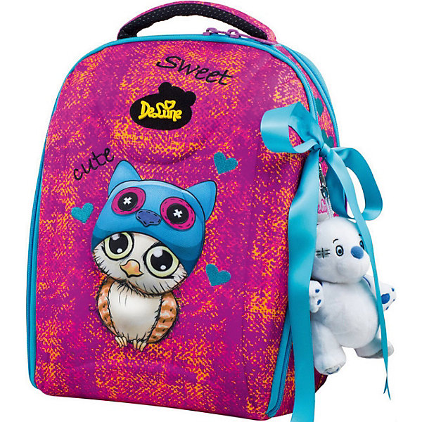 Ранец DeLune 7mini-010 с мешком для обуви и пеналом + брелок-мишка, Розовый/розовый