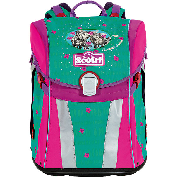 Ранец Scout "Sunny" Зеленое лето с наполнением, Зеленый/розовый