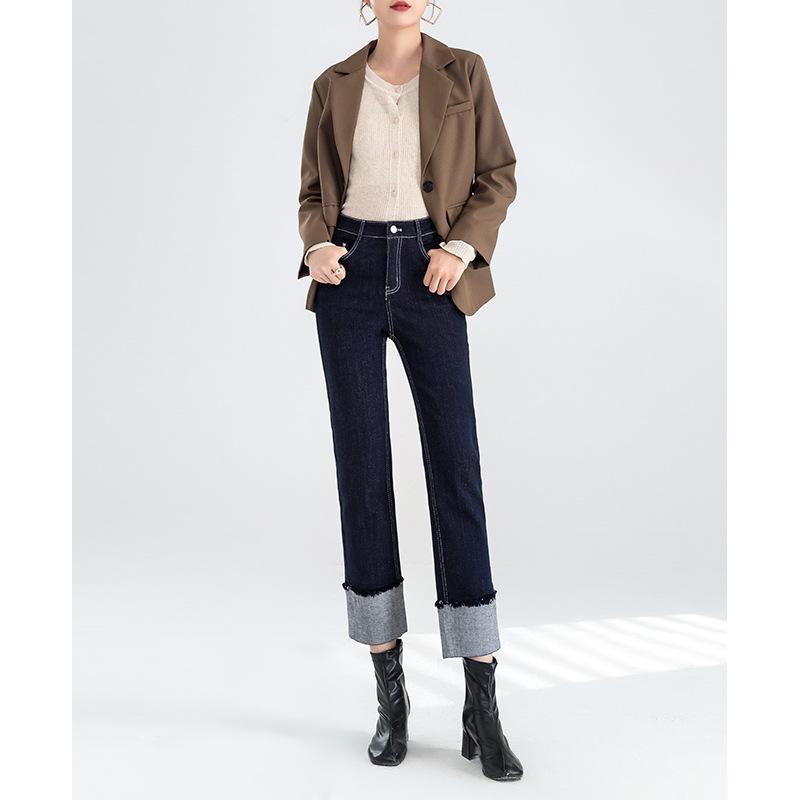 Расклешенные Утягивающие и Универсальные Женские Брюки с Высокой Посадкой, Носите Маленькие Прямые Джинсы-Сигареты из Денима для Нового Осеннего Стиля 32 темно-синий