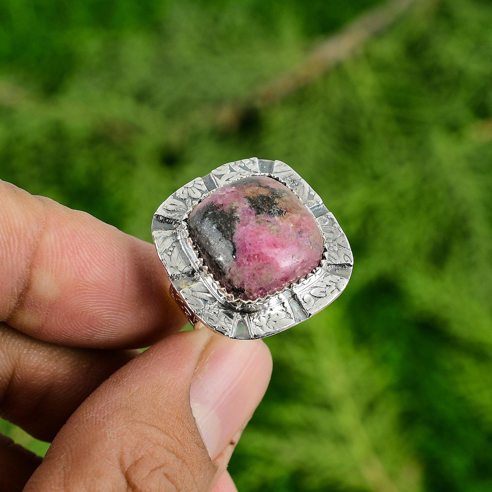 Распродажа ко Дню матери Натуральный родонит Жена Новое кольцо с несколькими камнями Ювелирные изделия Серебро 925 пробы Adjustable