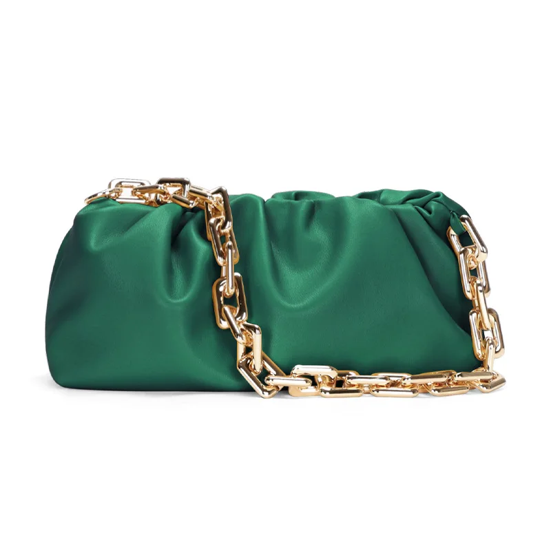 Распродажа, однотонная Золотая плотная плиссированная сумка через плечо с цепочкой от firmранчо INS, мягкая сумка из натуральной кожи для женщ...