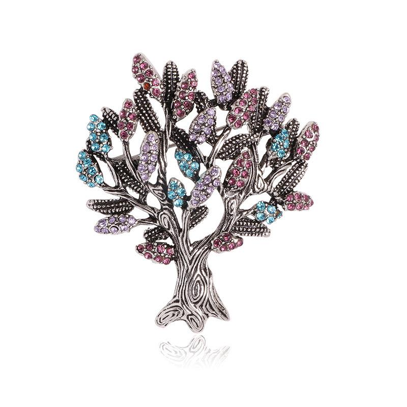 Растение Древо Жизни Античная Ретро Брошь со стразами Односимвольная Игла Полая Одежда Аксессуары Ретро Значок Роскошь Сейчас серебряный