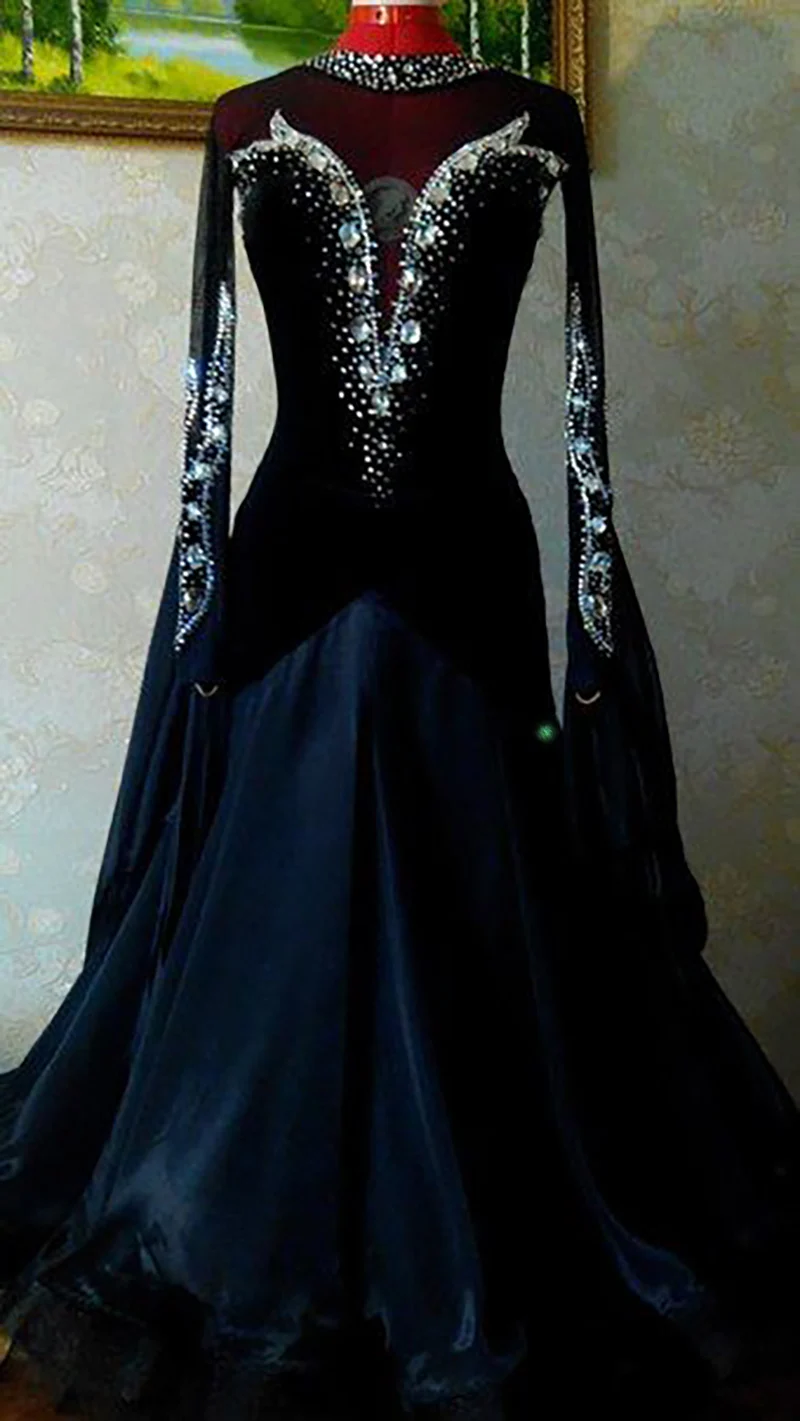 Расширенное бальное платье для конкурса танцев черное стандартное современное платье юбка высокое качество женское для вальса, бальных та...