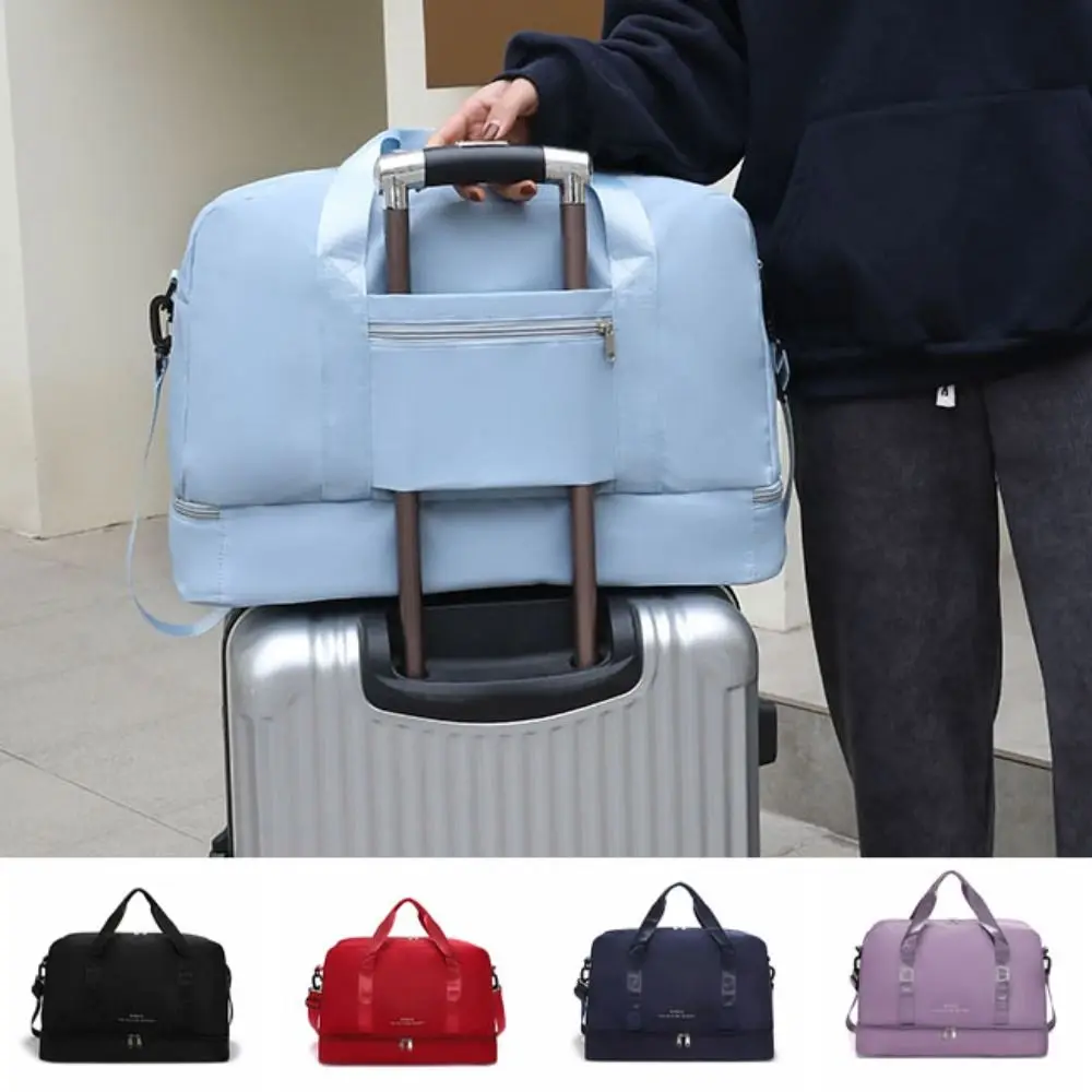 Расширяемая дорожная спортивная сумка, большая вместительная водонепроницаемая женская сумка для фитнеса, сумка через плечо для сухого и влажного разделения, спортивная сумка на плечо