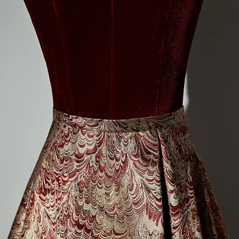Реальное фото винно-красное вечернее платье с принтом, ТРАПЕЦИЕВИДНОЕ длинное платье для выпускного вечера, новая модель, большие размеры