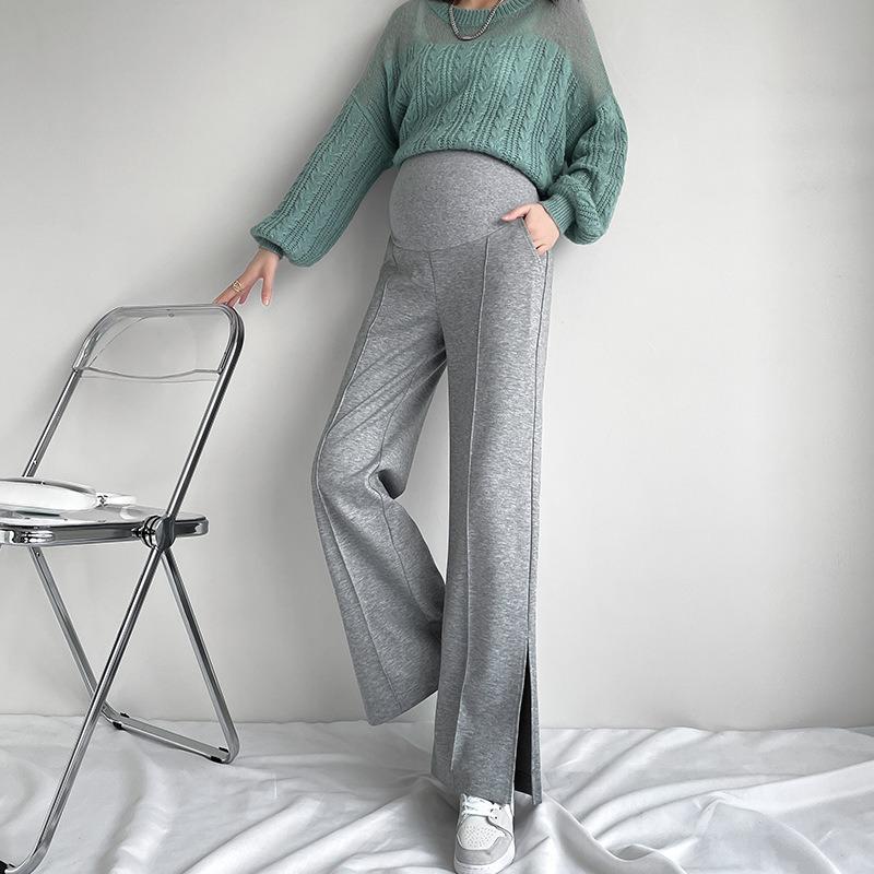 Реальные брюки для беременных осенние свободные большого размера с разрезом широкие брюки модные с высокой талией прямые брюки осенняя одежда XXL серый