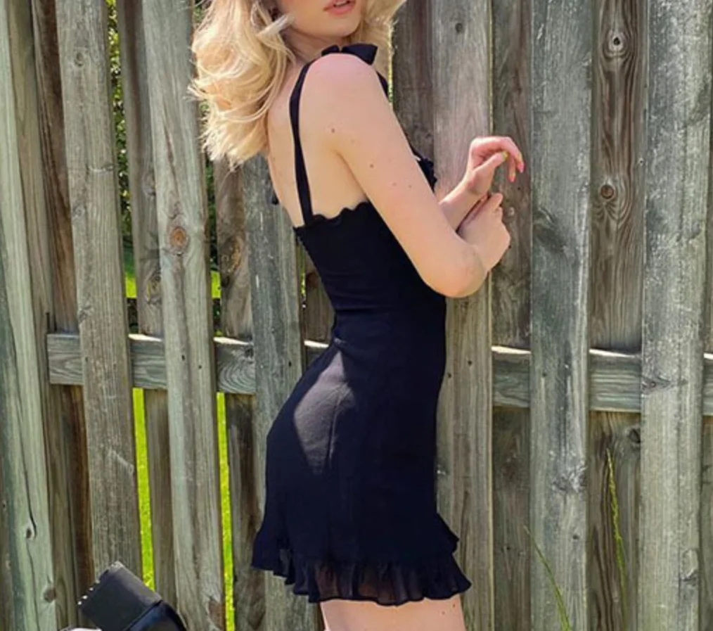 Новинка весна-осень 2023, Стильное элегантное женское платье с длинным рукавом и оборками, с круглым вырезом, однотонное платье
