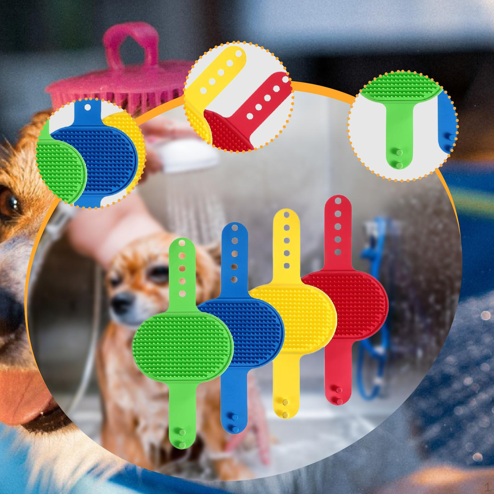 Регулируемая ручка Скраббер для питомцев для мытья собак и кошек во время купания 4Pcs