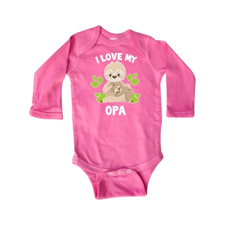 Inktastic Cute Sloth I Love My Opa with Green Leaves Gift Baby Boy or Baby Girl Long Sleeve Bodysuit
