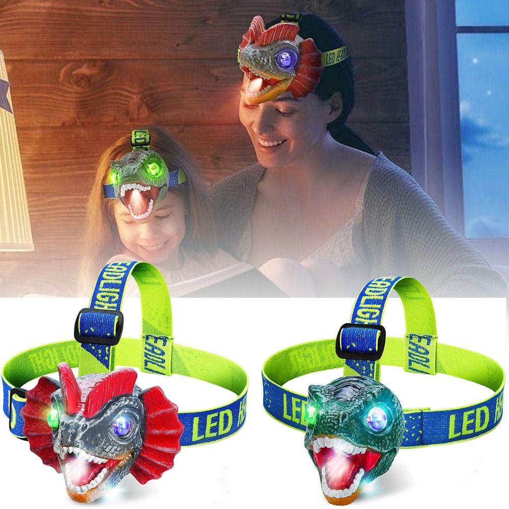 Регулируемый налобный фонарь в виде динозавра для детей, светодиодный фонарик для кемпинга, трицератопс, фара для чтения