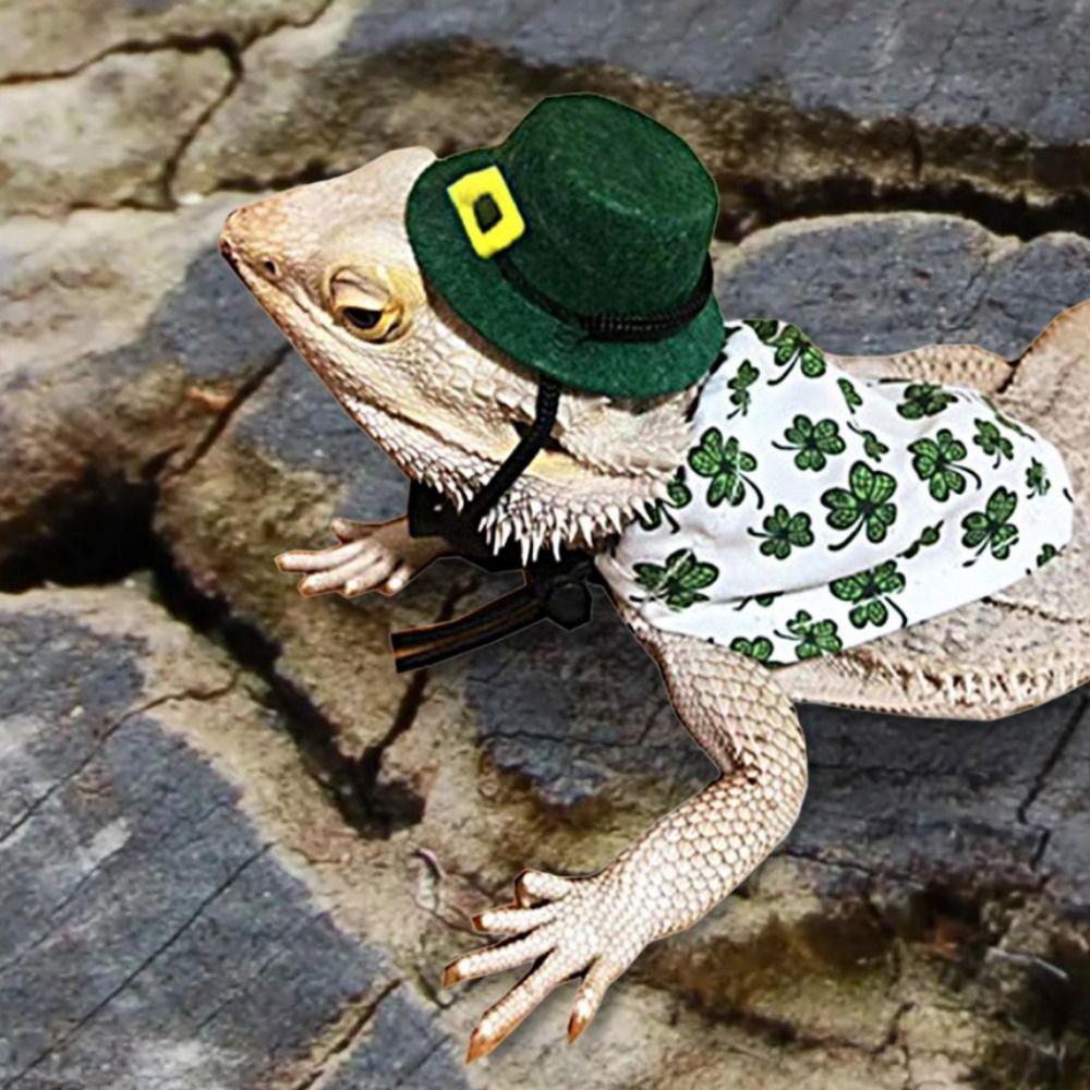 Регулируемый плащ ящерицы Мягкий головной убор ящерицы с узором из листьев Ящерица наряжается для морских свинок
