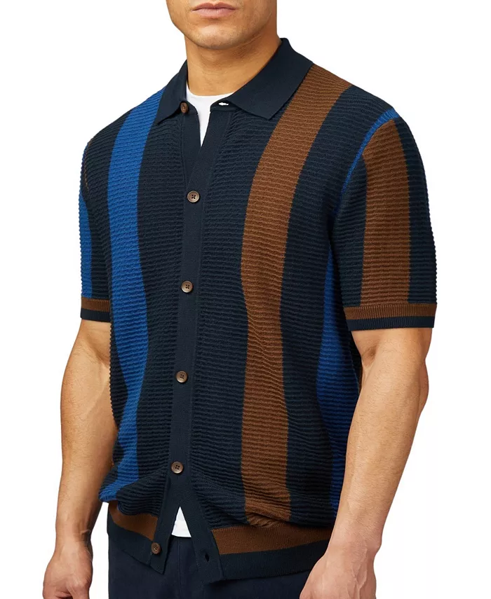 Мужская классическая поло-рубашка с текстурной полоской из трикотажа на пуговицах Ben Sherman, синий