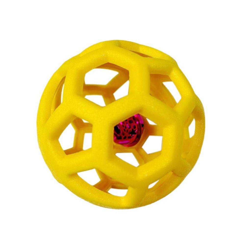Резиновые Разноцветные Кошачьи Мячи Полые Мячи для Кормления Лошадей Игрушки для Кошек Решетчатые Мячи Снимают Тревогу yellow-with bell