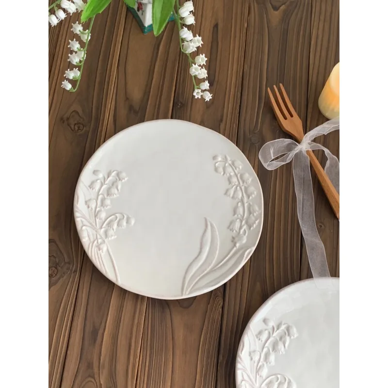 Рельефная полированная и старая керамическая тарелка ручной работы, плоская тарелка и овощная тарелка, одна 22x2 см.