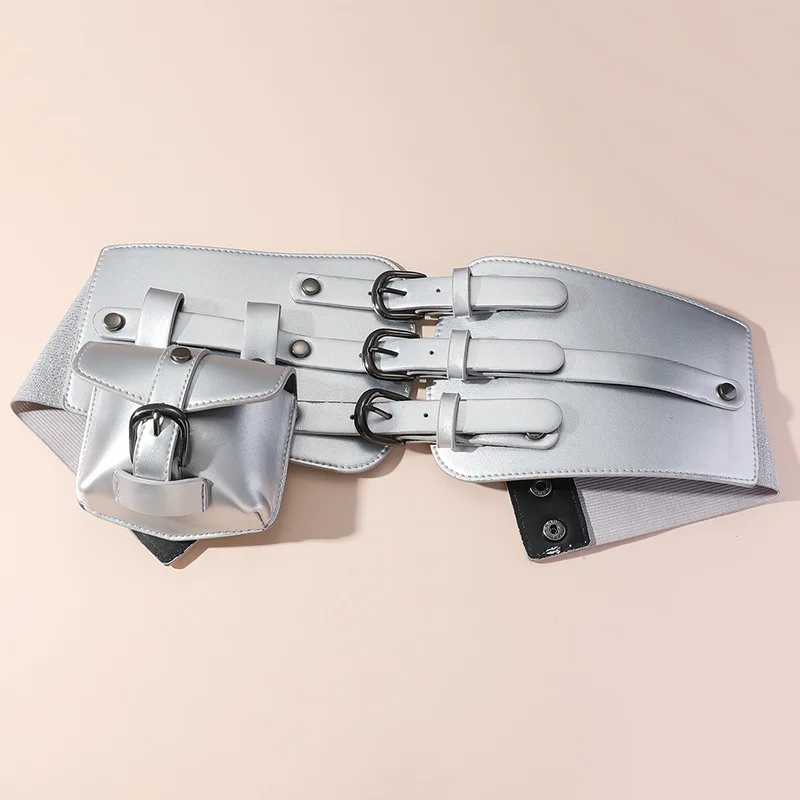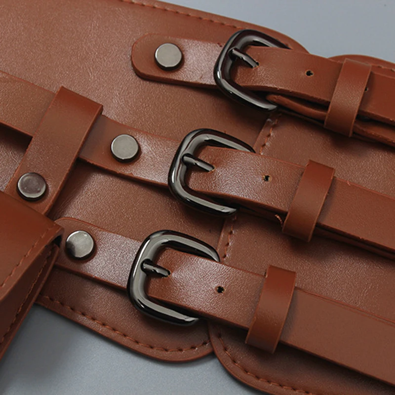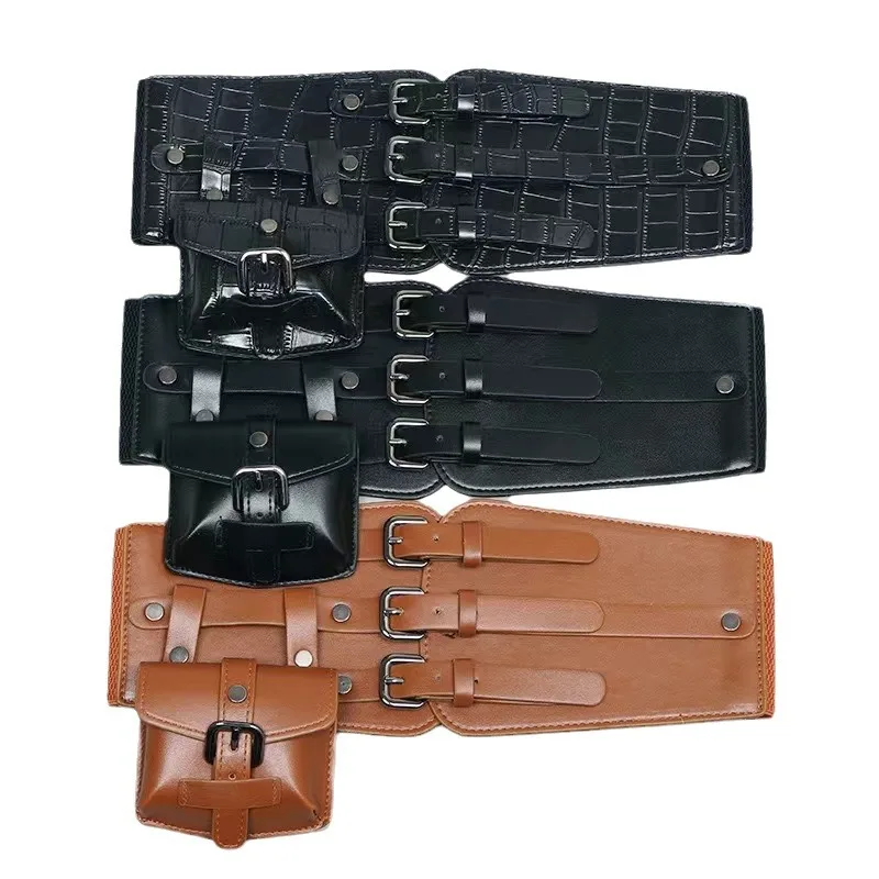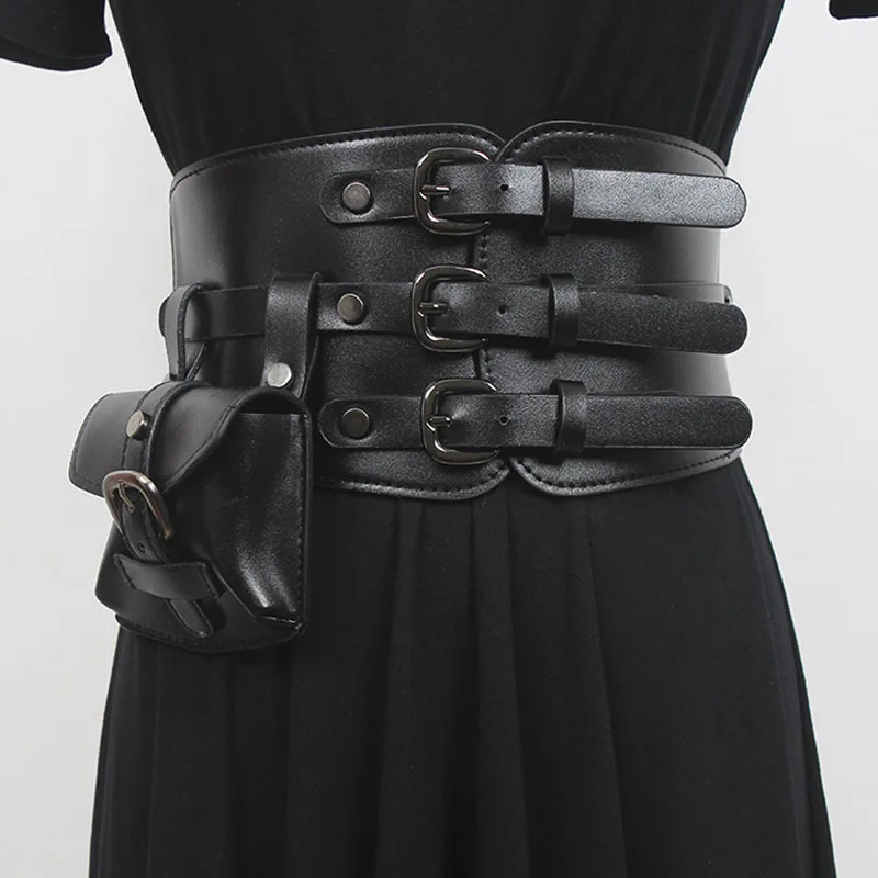 Ремень в стиле панк для женщин, рулонная цепочка на плечо для платьев, клубов, из воловьей кожи, с черной пряжкой с язычком, широкий пояс для пальто