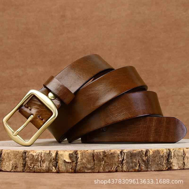 Ремень мужской, корейский стиль, модная модная латунная пряжка, кожаная пряжка, первый слой, коровья кожа, простой универсальный ремень для брюк 125cm