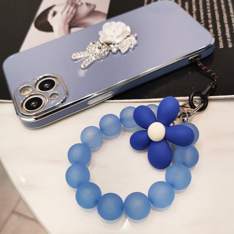 Ремешок для мобильного телефона, шнурок для смартфона с цветком, синий ремешок для запястья, шнур для аксессуаров, телефонная веревка, брелок для чехла