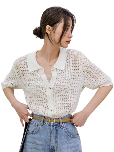 dazy-less hollow out puff sleeve cardigan without camisole q3yv#, White;black