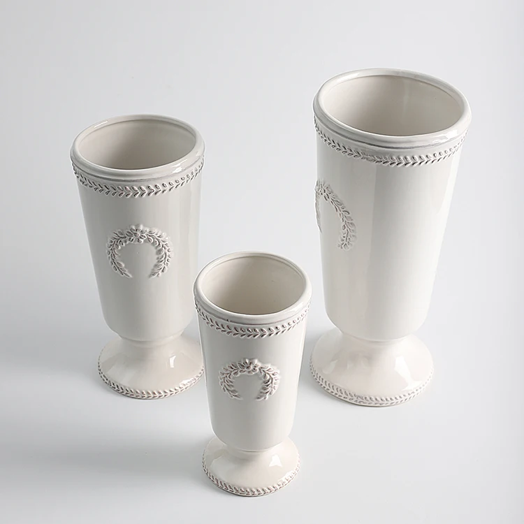 Ретро Американский Кантри Средиземноморский Белый Керци Ваза Для Цветов Пшеница Шип Рельефная Цветочная Композиция Большой Размер Tableto...