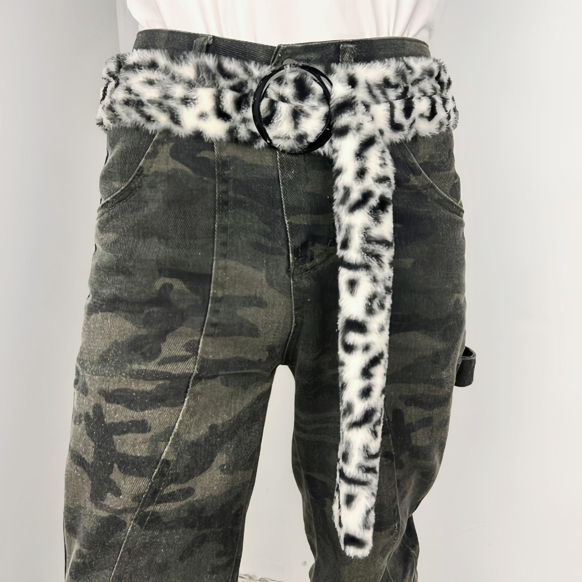 Ретро Горячая Девушка Личность Леопардовый Принт Плюшевый Пояс, Перфорированная Металлическая Пряжка в Форме Куриного Глаза, Аксессуары для Одежды, Украшения на Талию 125cm