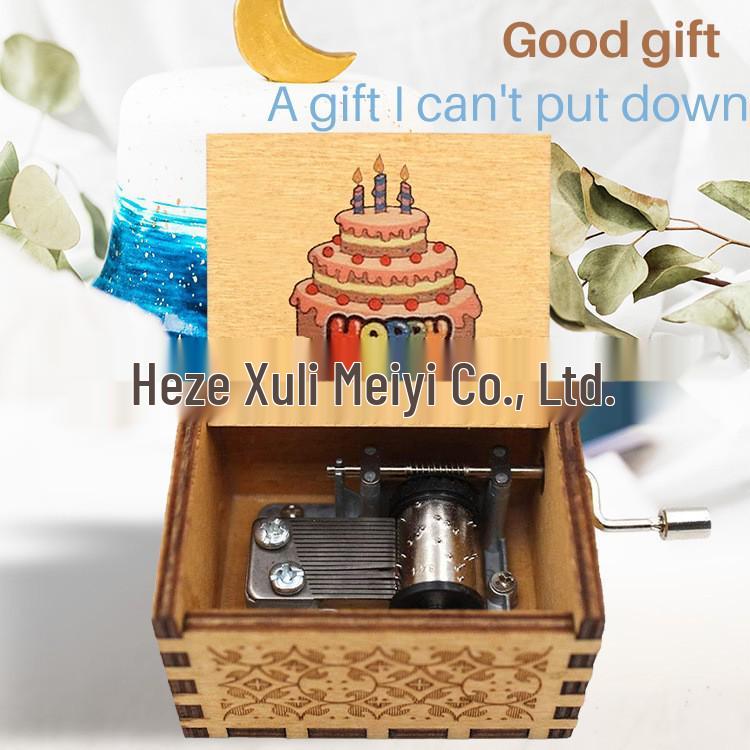 Ретро Деревянная Музыкальная Шкатулка с Ручным Приводом «С Днем Рождения» 6.4x5.2x4.2 cm