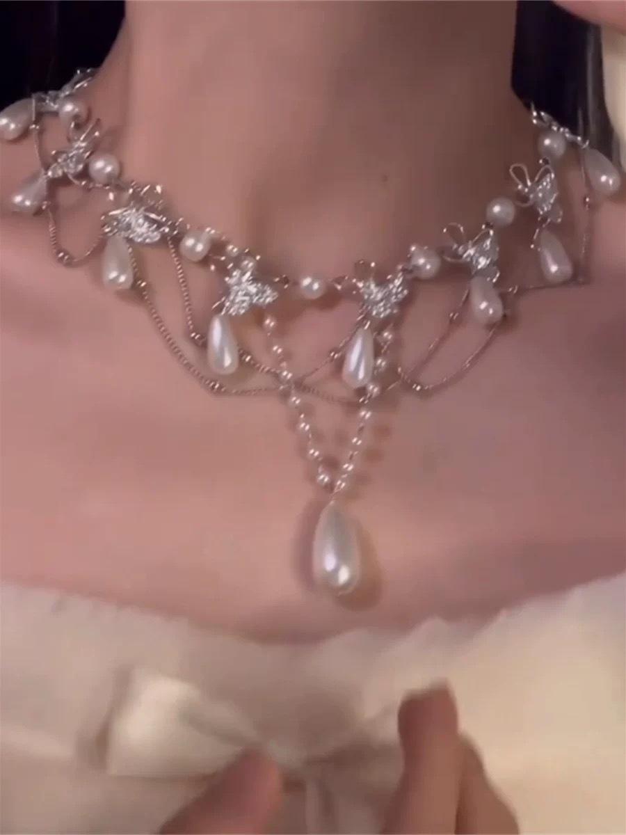 Ретро Жемчужное Многослойное Ожерелье с Подвеской - Элегантная Легкая Роскошная Цепочка на Ключицу для Женщин