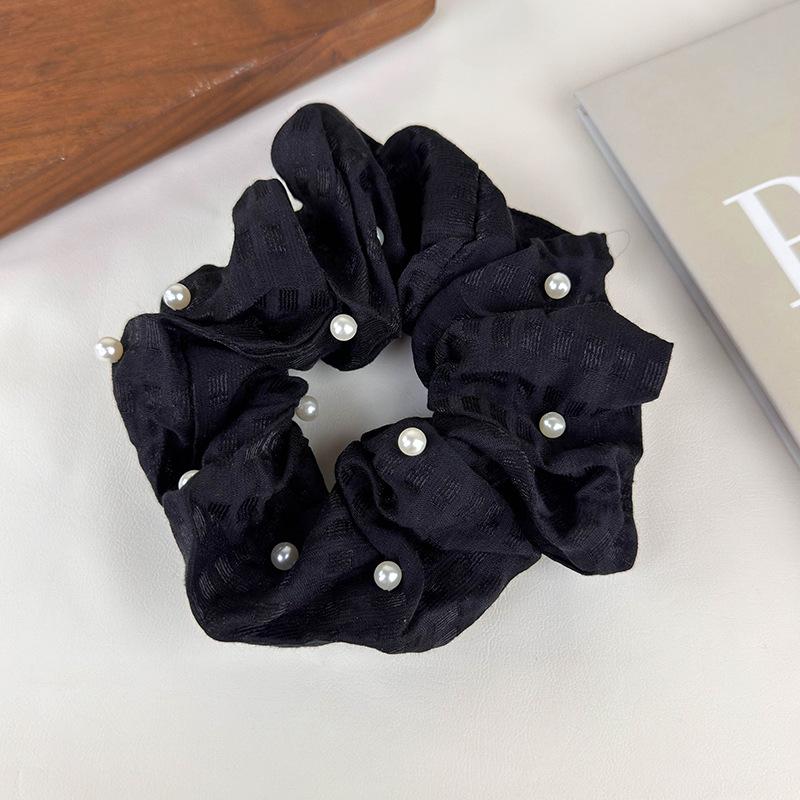 Ретро Жемчужные Скранчи для Волос Летняя Нежная Однотонная Повязка на Голову для Женщин Девушек Элегантная Эластичная Резинка для Волос Хвост