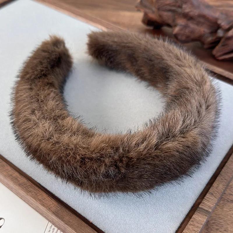 Ретро Имитация Норки Плюшевая Повязка на Голову Пушистая Широкая Повязка для Волос для Женщин Темперамент Элегантный Ободок для Волос Женские Модные Аксессуары для Волос