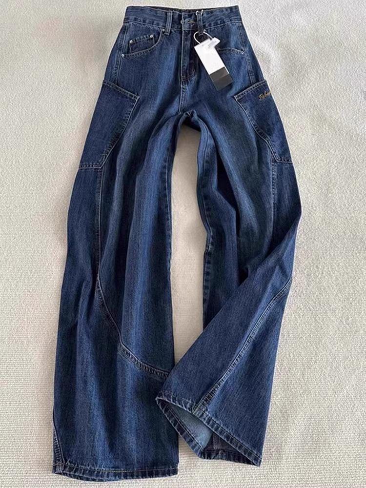 Ретро Корейские Синие Джинсы-Скимитары: Женские брюки с высокой талией, широкими штанинами, свободного кроя для весны и осени. XL синий