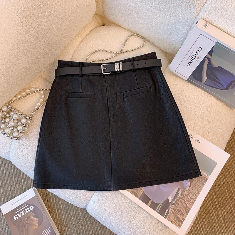 Ретро Кофейная Юбка Миди из ПУ Кожи - Женская 2025 с Высокой Посадкой, Облегающего Кроя для Миниатюрных Фигур, Облегающая Бедра, Новая Коллекция Осень/Зима. XS