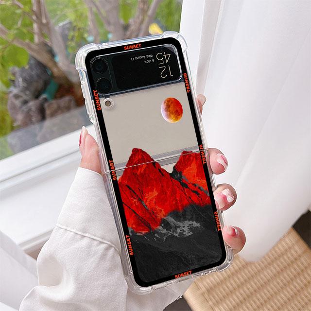 Ретро Лунная Эстетика Снежная Гора Роскошный Чехол Для Samsung Galaxy Z Flip 3 4 5G Funda Z Flip3 Прозрачная ПК Жесткая Задняя Крышка Чехол для Телефона Samsung Z Flip4 5G