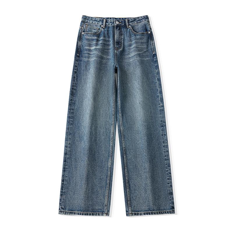 Ретро Моющиеся Универсальные Джинсы для Мужчин Простые Широкие Штанины Большого Размера Прямые Штанины Японские Длинные Брюки 40 синий
