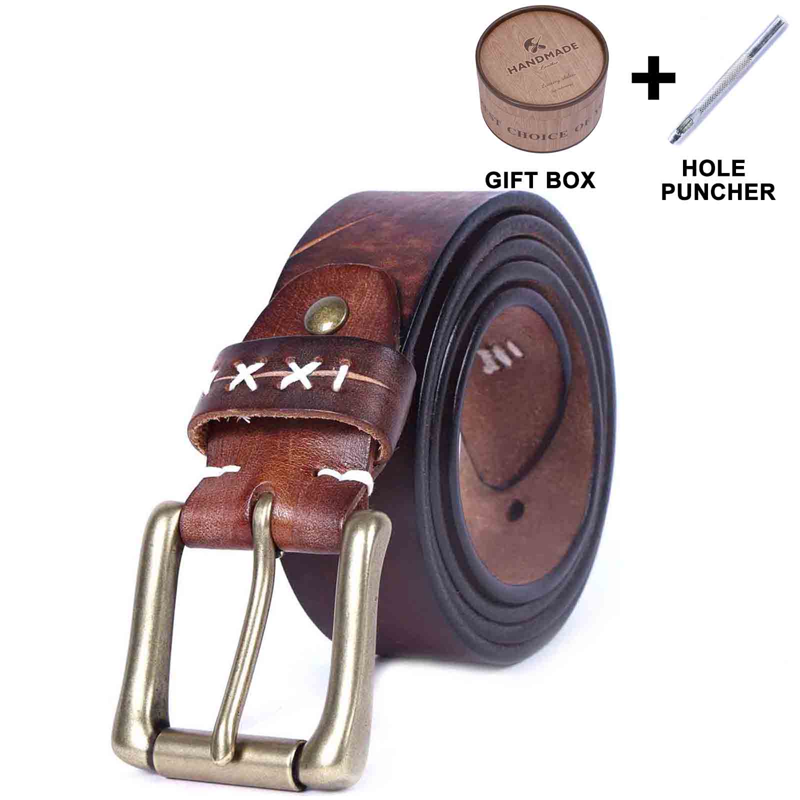 Ретро Мужской ремень из коровьей кожи первого слоя Медная пряжка Ремень с пряжкой-пином Персонализированный Ручной работы Итальянская кожа Утолщенный ремень темно-коричневого